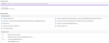 I did not have high expectations given that it was an encoded powershell command that I had entered, but to my surprise the EML was analyzed and marked as "Likely Benign". Score.