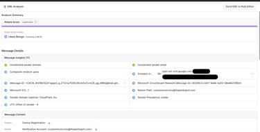 This made me wonder, "Does the analyzer even click and follow the link?" I checked the web server logs and saw no request made when the EML file was uploaded to the tool.
