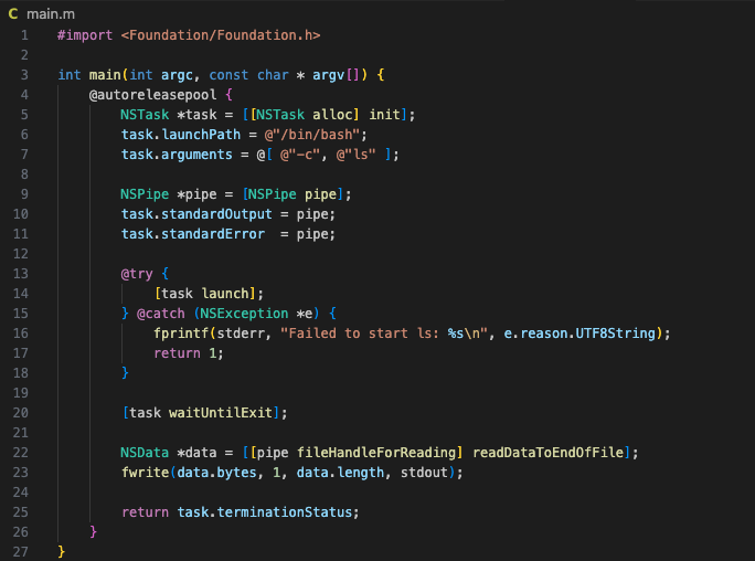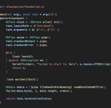 Our payload will be a simple Objective-C program that pops a command in our terminal.