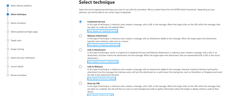 Your first selection will be deciding how your phish will be delivered: Email or Teams. For the sake of this post, we will be walking through the email option.