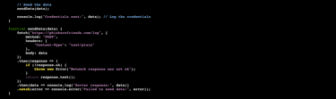 The code begins by looking to see if "Enter" is pressed. If so, it will call the function sendCredentials. If the end-user clicks the "Submit" button instead the function submitButtonClicked will still send the next step to sendCredentials.