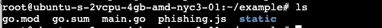 Before we write our HTML page, you will want to go into the directory where your current phishing files are at. Add a directory named "static" and inside "static" create an HTML file named "landing.html". Our Go server is calling our webpage from this location so we need to ensure that things are named and placed properly. Your phishing directory should now look like this: